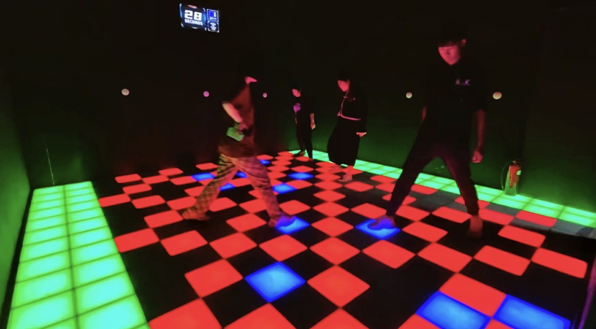 失控魔方,源自加拿大和北美爆火的游戏馆“Activate Games”,这是一个充满科技感与运动感的游戏 馆,被称为“鱿鱼游戏”“最适合团建”的线下游戏。 失控魔方中有十几个不同的主题互动游戏房间,包括如同特工穿越激光束的“LASER”、类似投篮游戏 的“HOOPS”、交互式攀岩的“Climb”,而其中最终热门的,就是其中灵魂游戏 “跳格子游戏“Grid”。