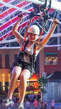 栋能魔王·城市馆1号店以“年轻”的目光审视商业运动的未来,用全新姿态来重新打开乐园空间。将“体育”、“商业”、“娱乐”三产融合,以“轻体育”理念为核心,集探险运动、休闲娱乐、竞技体育、运动餐吧为一体的轻运动活力中心。